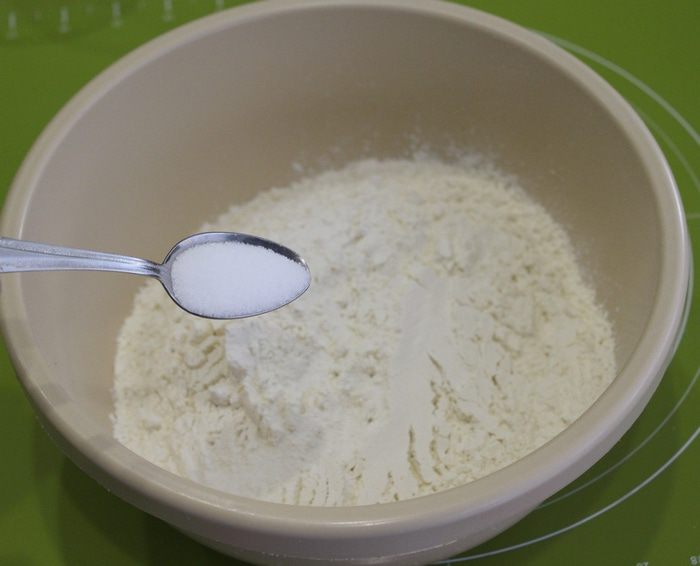 В миску насыпьте муку, добавьте соль.