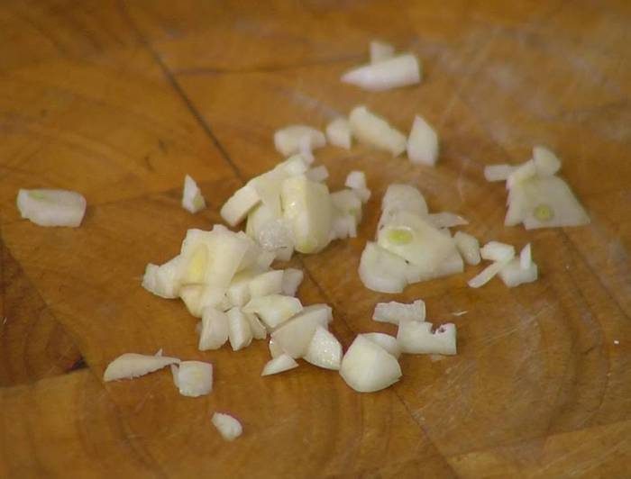 Чеснок почистить и мелко порезать.