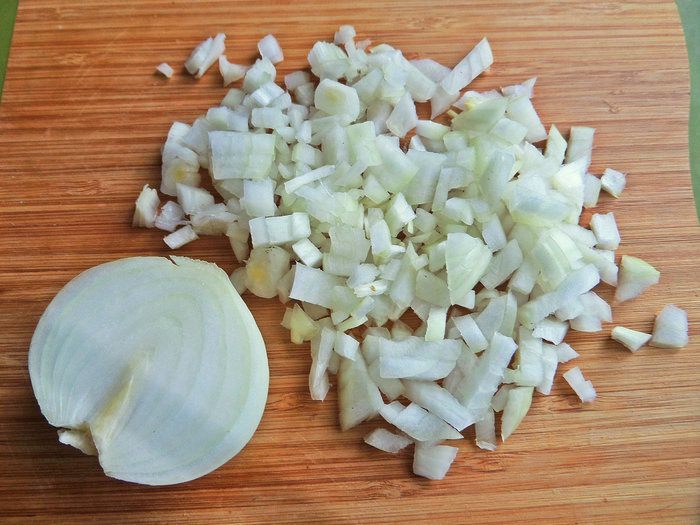 В это время луковицу измельчить.