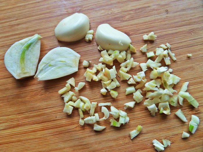 Чеснок тоже измельчить.
