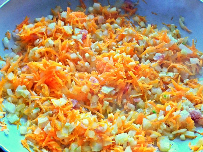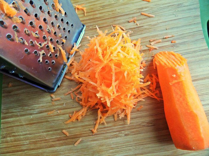 Морковь натереть мелко.