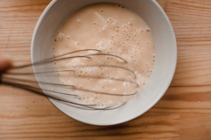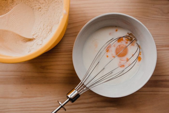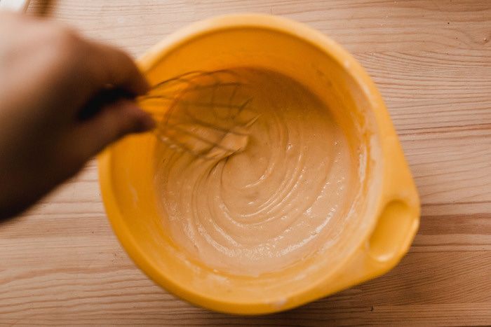Растопить сливочное масло и добавить в емкость с молоком. Перемешать.
