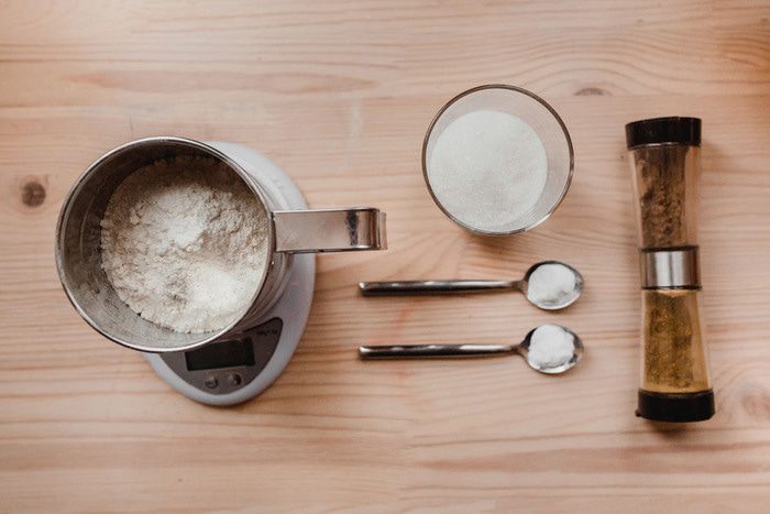 Тщательно смешать в чаше муку, сахар, соду, разрыхлитель и корицу.