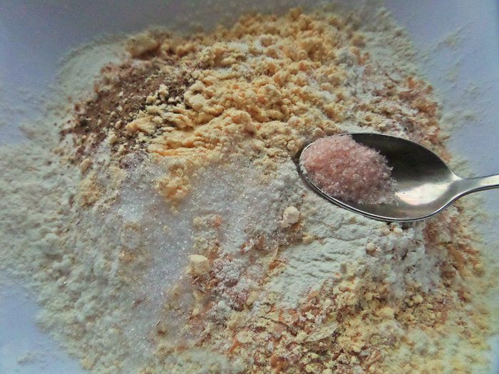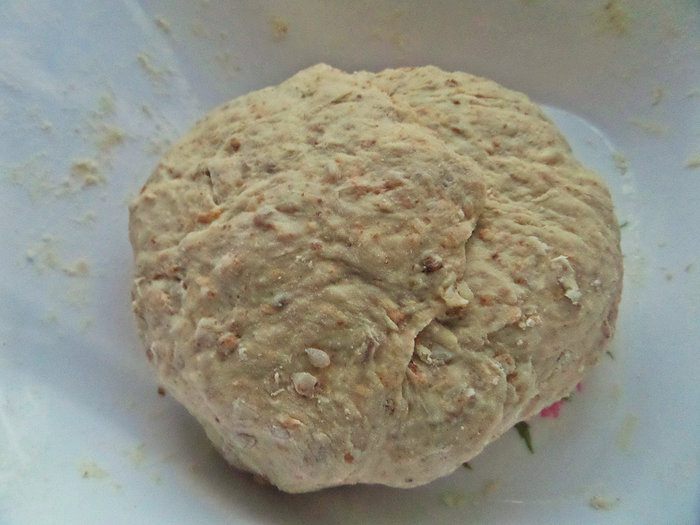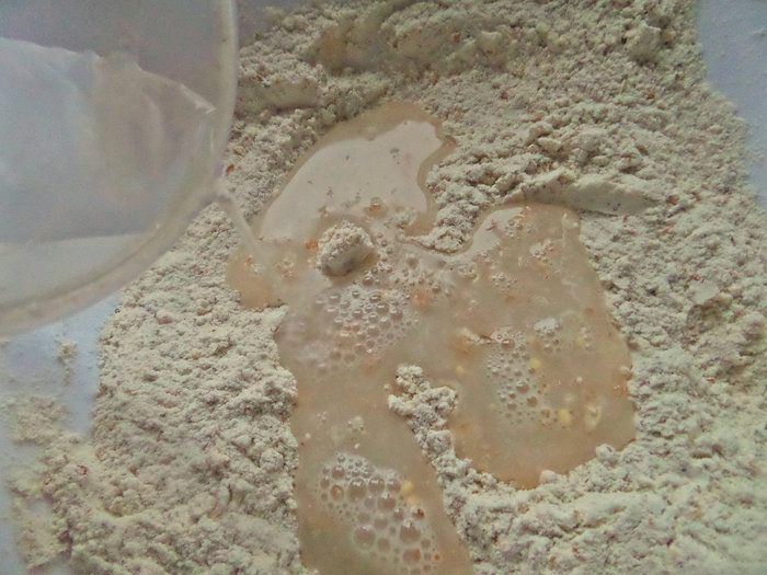 Вымесить вместе с крупой.