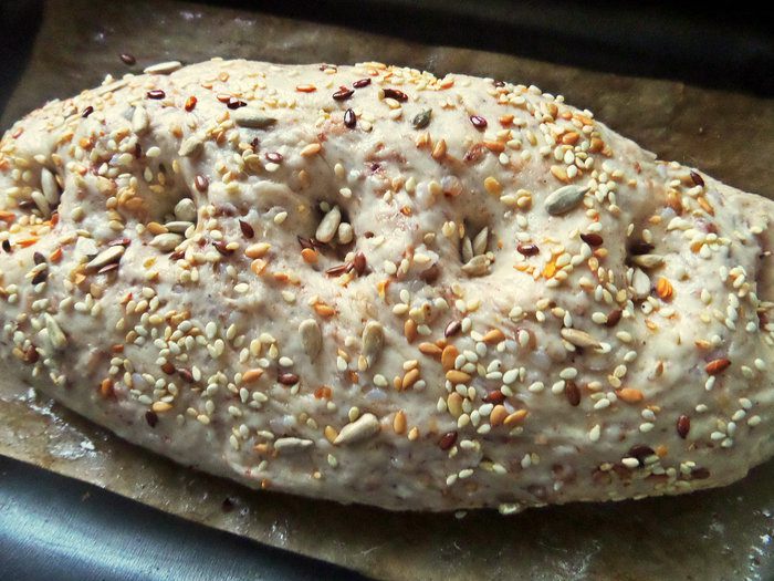 Посыпать смесью семечек.
