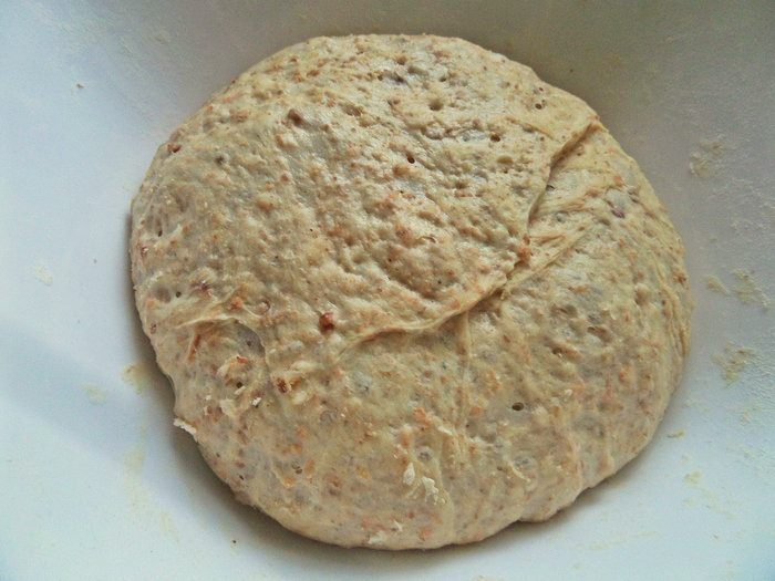 Смазать руки оливковым маслом и вынуть тесто.