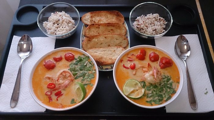 Разливаем по тарелкам, добавляем кинзу, чили и лайм, подаем с отварным рисом и жареным хлебом. Приятного аппетита! Наслаждайтесь. Попробуйте приготовить и узнайте вкус мирового рейтинга!