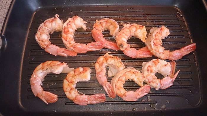 Обжариваем креветки с двух сторон.