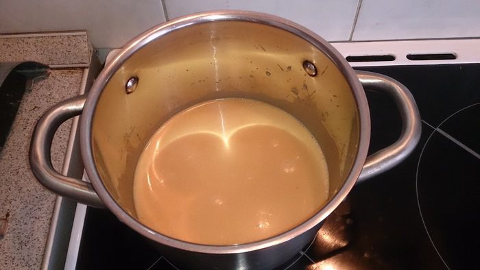 Выливаем содержимое пакетика в кастрюлю и даем закипеть.