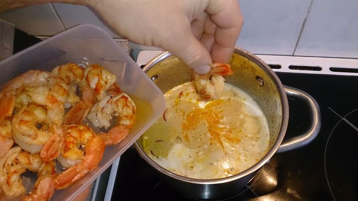 Добавляем креветки.