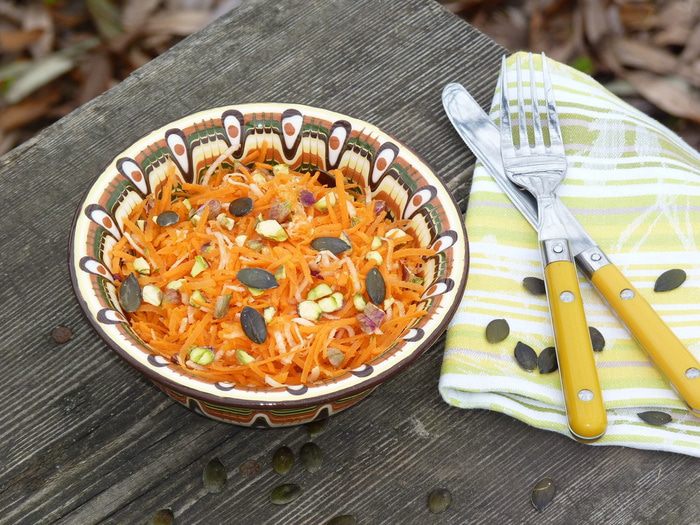 «Тыквенный» конкурс завершается, а блюда с тыквой продолжаются. Предлагаю простой рецепт вкусного и полезного салата.
