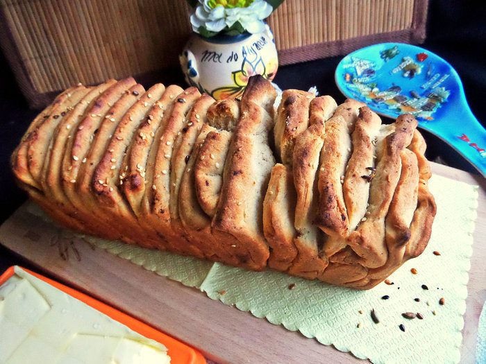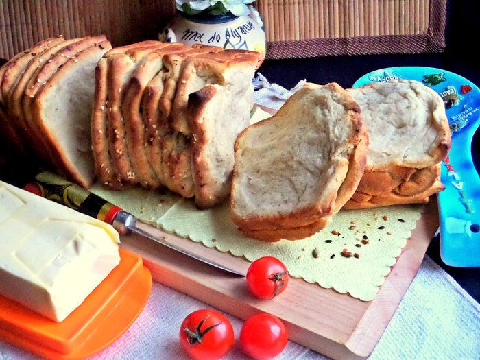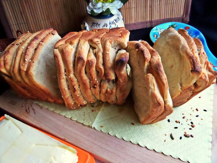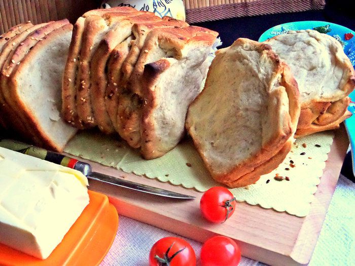 В этом хлебе привлекает все, и сливочно—хлебный аромат, и корочка. В нем присутствует некая небрежность при отламывании ломтей — да нет, они сами распадаются на порции и их так вкусно кушать! Очень уютный, домашний вариант хлеба.