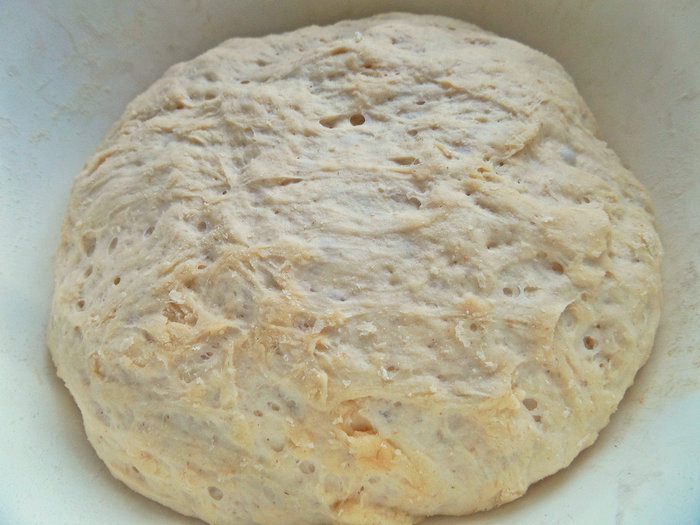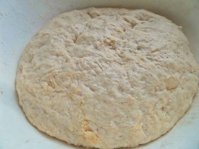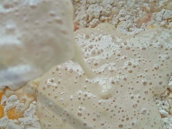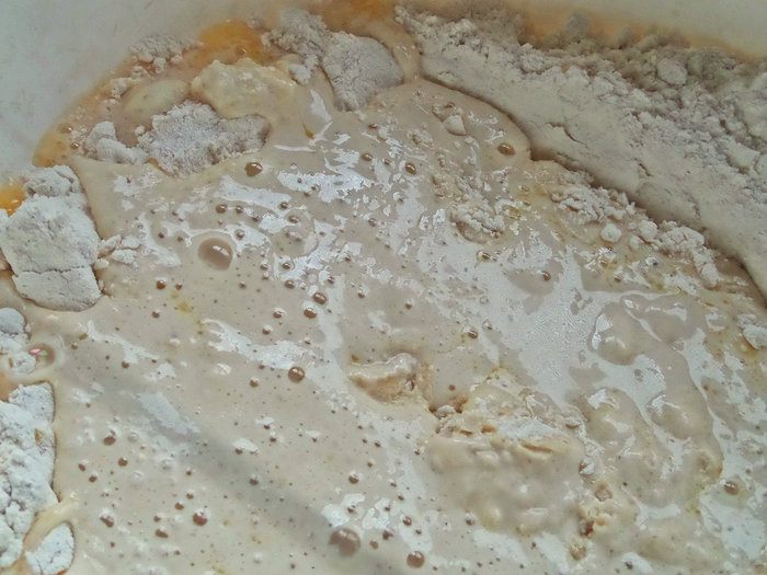 Смешать все для опары, оставить в теплом месте на 20 минут.