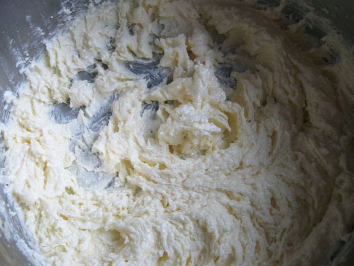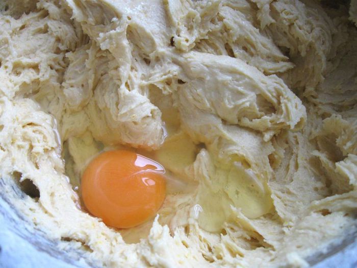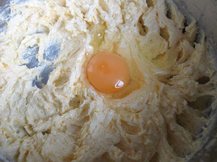 Затем еще по очереди 2 яйца. Массу взбивать слегка после каждого яйца.