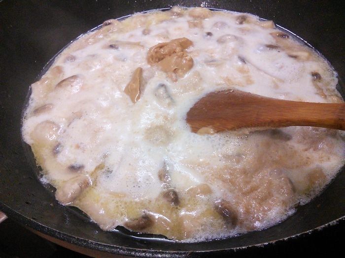 Выложить мясо и помидоры и тушить 5 мин. Мне показалось, что соус жидковат, поэтому я запустила его 1 чайной ложкой кукурузного крахмала (разводите крахмал в 2 ст. л. холодной воды и вливаете в сковороду). Можно также уменьшить изначальное количество воды до 100 мл.