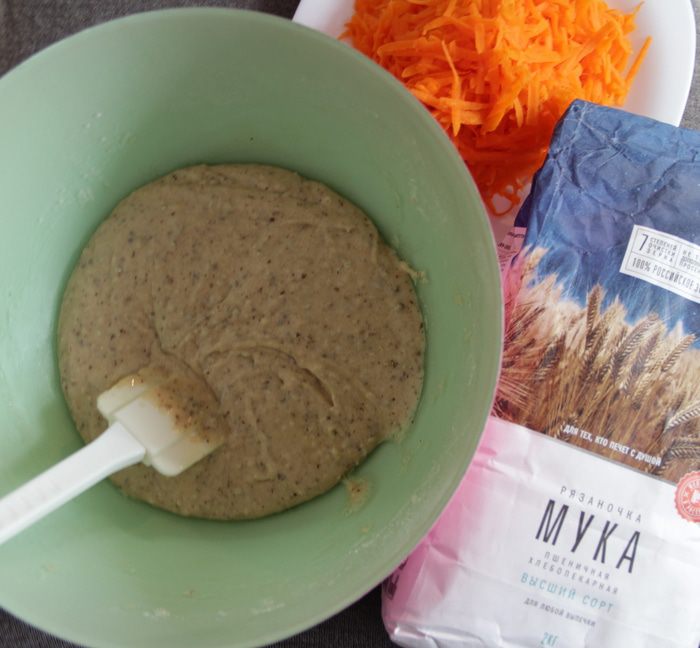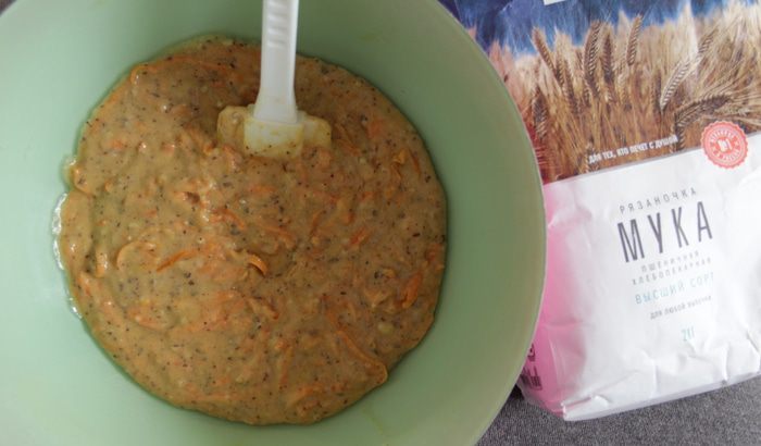 Добавить в тесто тыкву и тщательно перемешать.
