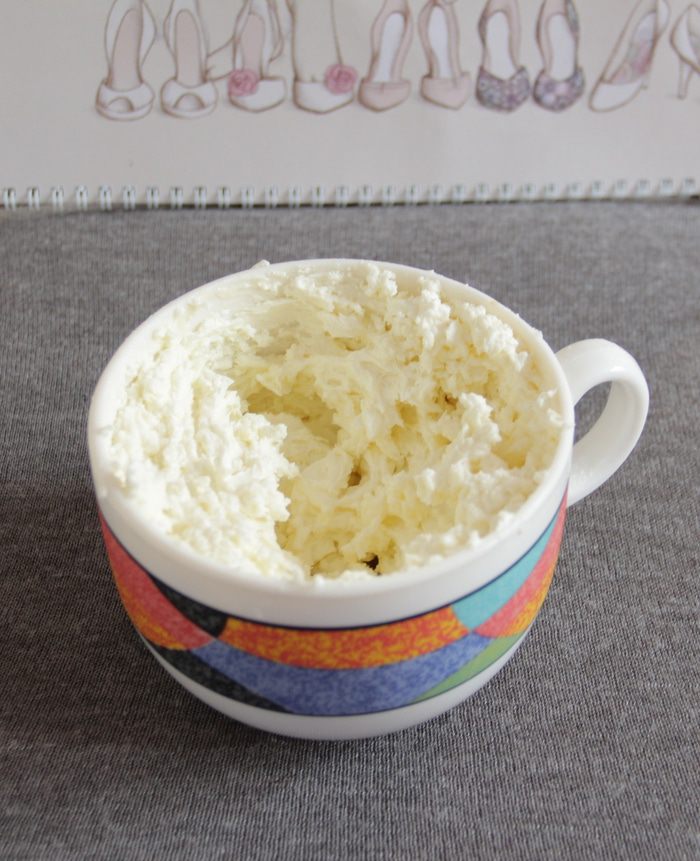 Затем добавить охлажденный сливочный сыр (желательно с солью в составе) и хорошо взбить миксером.