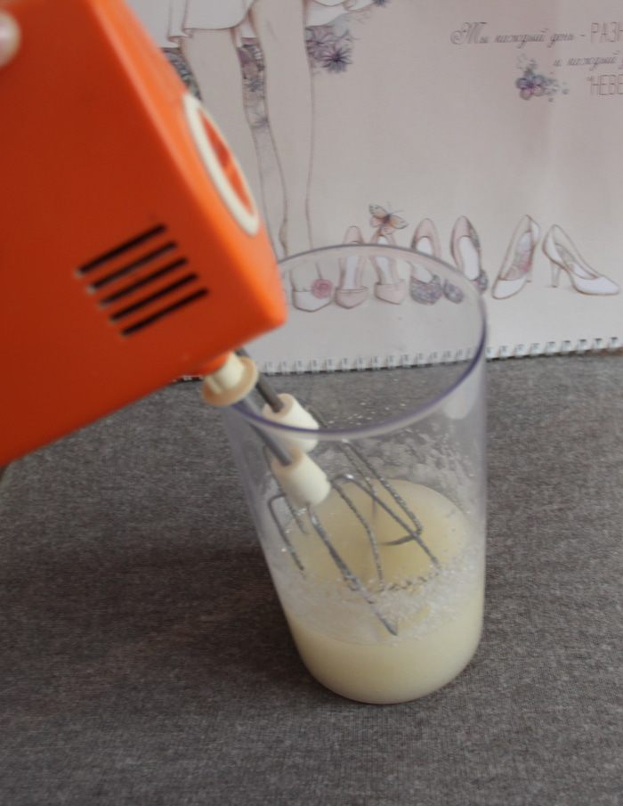Добавьте яйца и взбивайте миксером около 4 минут.