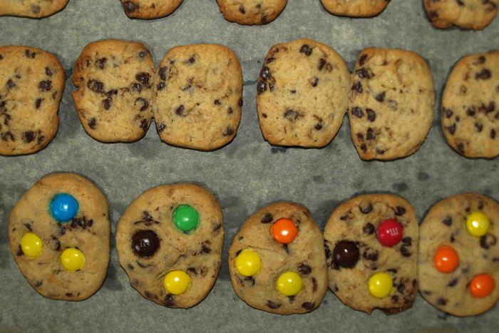 Печенье можно украсить сверху драже M&M’s.