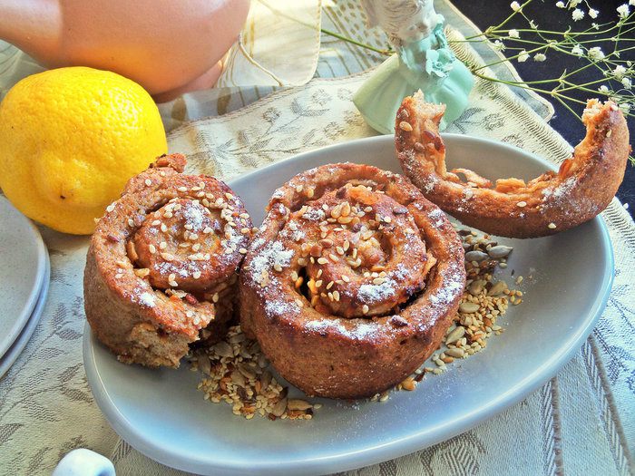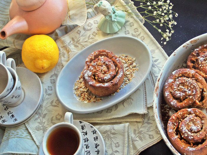 Булочки! Как много приятного, уютного в этом слове. Но, мы же сдерживаем себя. Печем — да, но лишь умиляемся, как уплетают их наши домочадцы. И вот ура! Эти булочки можно спокойно и нам кушать (в умеренном количестве, конечно), утром на завтрак самое то! Угощайтесь, милые дамы, смело. Очень вкусные и не приторные.