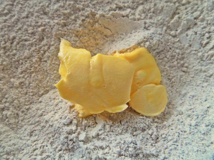 Тесто немного липкое,похоже на пластилин.