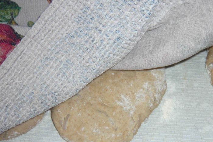 Оставить на присыпанной мукой поверхности на 30 минут под полотенцем.