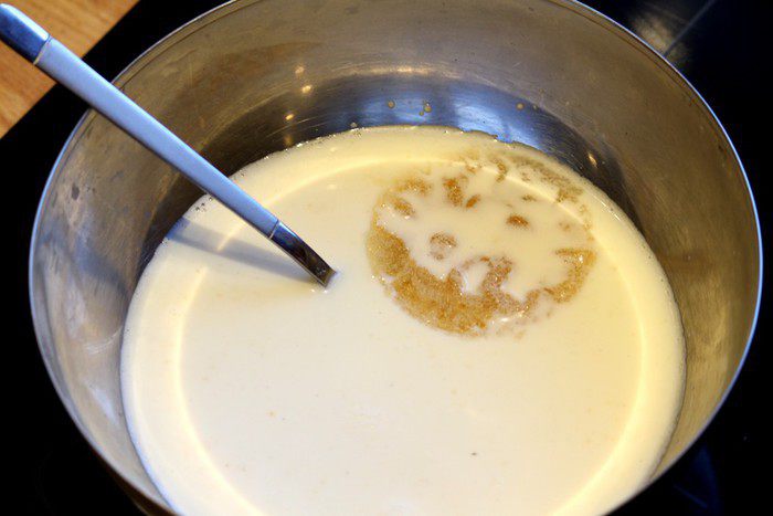 Набухший желатин отправляю к сливкам и перемешиваю на медленном огне до полного растворения.