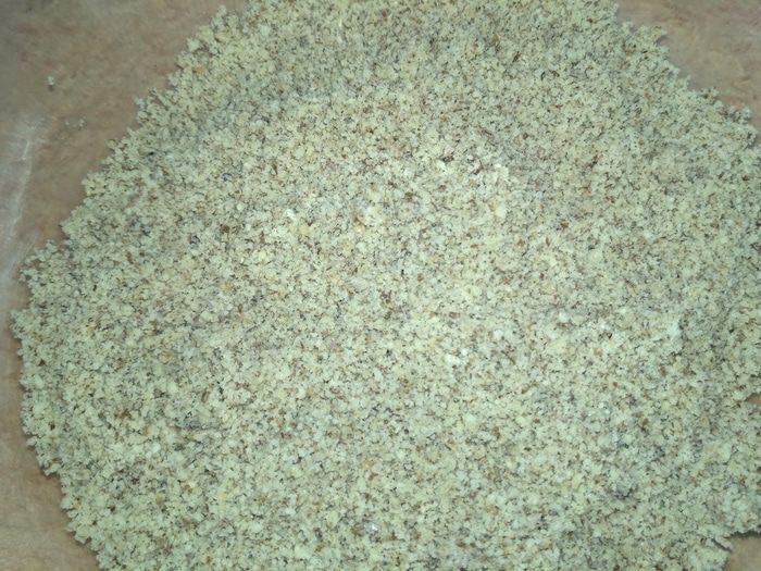 Остывшие орехи перемолоть до состояния муки.