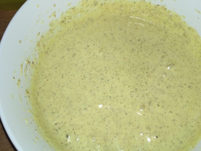 Отдельно смешать сухие ингредиенты и частями всыпать в получившуюся смесь. Каждый раз аккуратно перемешивая (лучше ложкой).