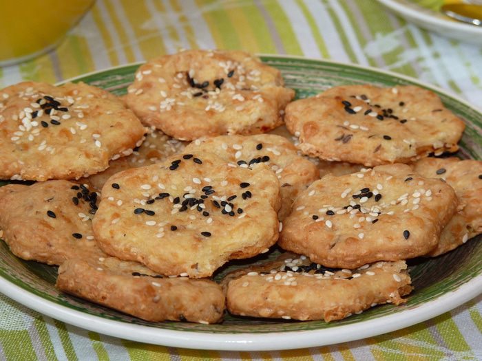 Украсить кунжутом.