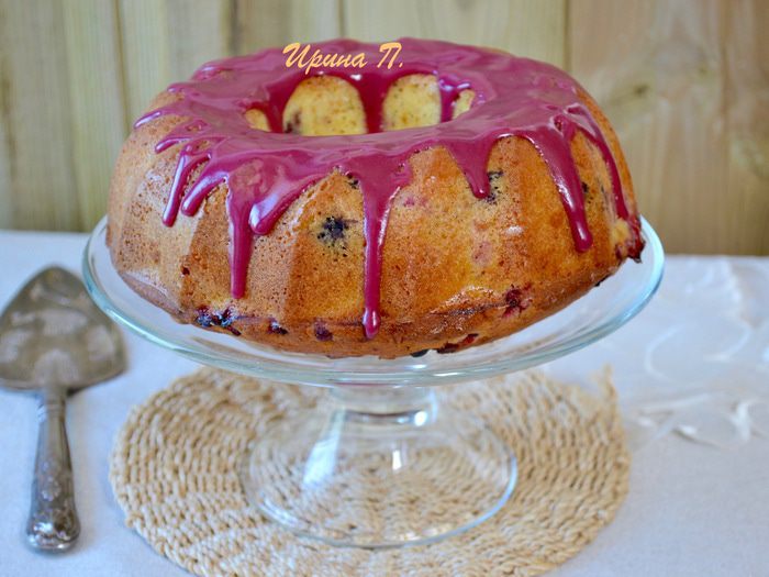 Для глазури просеять сахарную пудру, добавить к ней первоначально 1 ст. л. черничного сока и, размешивая, добавлять по капле сок до получения желаемой консистенции глазури!