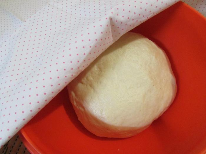 Тесто накрыть салфеткой и отправить в теплое место для подъема теста в два раза.