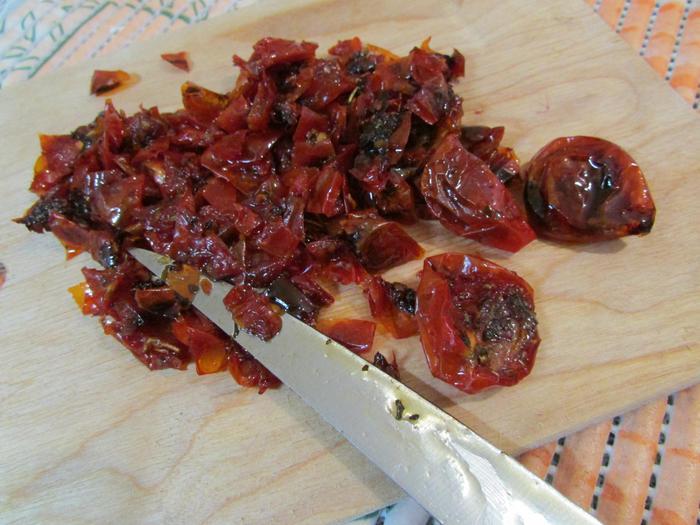 Этим временем приготовить начинку. Томаты мелко порезать.