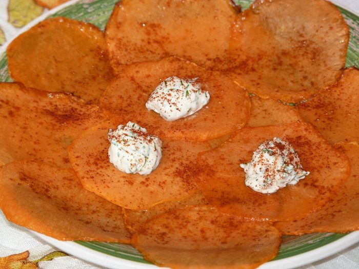 Очень вкусные, хрустящие, ароматные чипсы. Понравятся и детям, и взрослым! Аромат тыквы совсем не чувствуется! Попробуйте, не пожалеете.