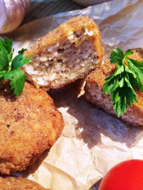 К рубленному/измельченному мясу добавить сыр, яйцо, сухари, посолить и поперчить по вкусу, также добавить свои любимые специи/травы. Я добавила смесь итальянских трав. Все тщательно перемешать. Фарш готов.