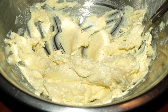 Размягченное масло взбиваем с сахаром и солью.