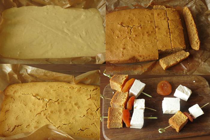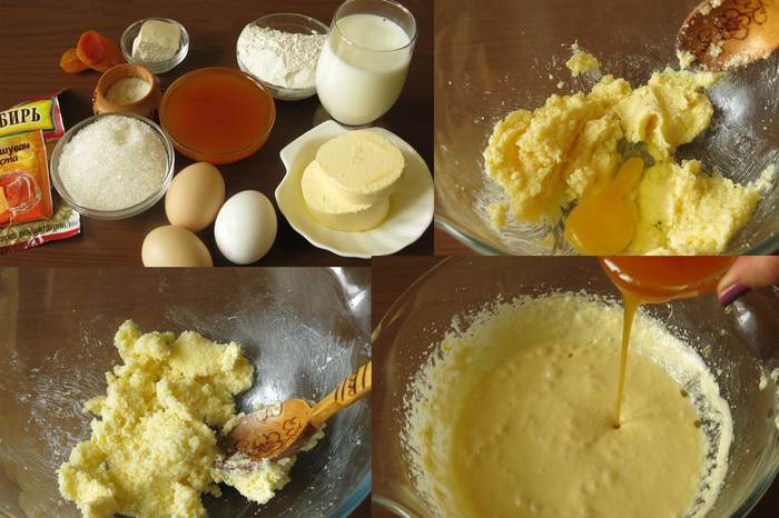 Просеем муку, добавим в тесто одну треть муки, соль, полторы чайных ложки имбиря, для более стойкого вкуса увеличим количество специи до 3 ложек. Положим разрыхлитель, если у Вас есть самоподнимающаяся мука ТМ «Рязаночка», то Вам не придется подбирать пропорции мука-разрыхлитель, все компоненты входят в состав. В массу наливаем треть молока, перемешиваем, всыпаем вторую треть муки, добавляем еще 50 мл молока, перемешиваем всыпаем оставшуюся муку и вводим последнюю порцию молока. Смазываем пергамент маслом, выливаем тесто в форму.