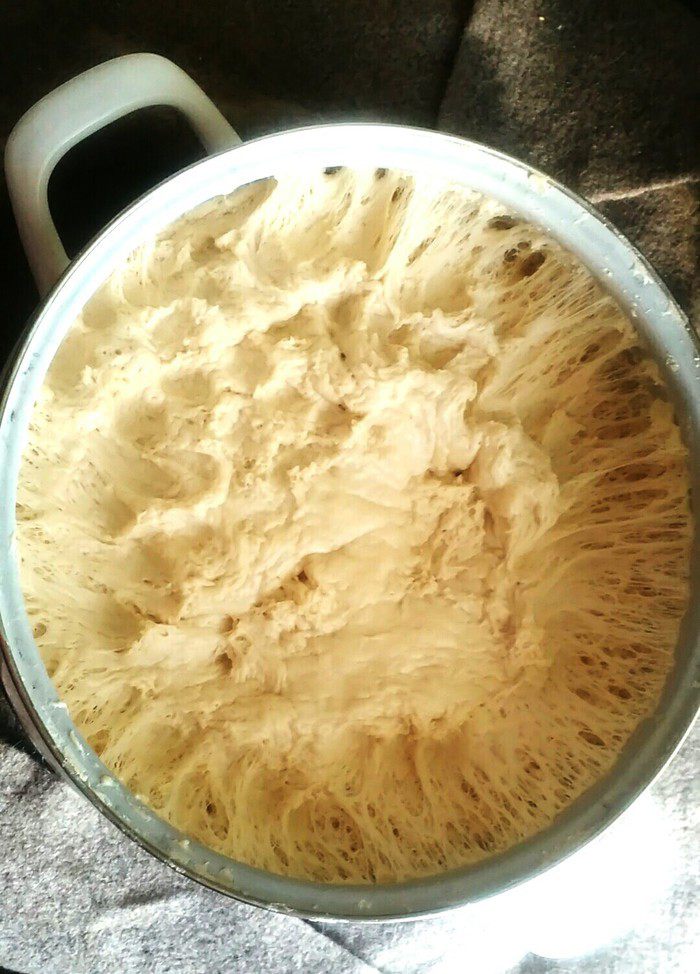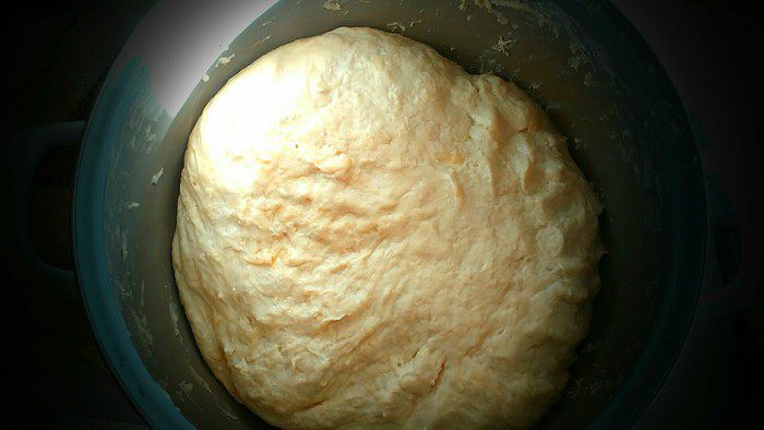 Во-первых, надо запастись хорошим настроением:) Дрожжевое тесто очень тонко чувствует и чутко реагирует на посторонние раздражители, поэтому к процессу его приготовления надо подходить со всей ответственностью, но не стоит пугаться — получится у всех. Подогреем 1 литр молока (мама говорит, что по-другому у нее уже рука не берет), добавим дрожжи. Размешаем. Затем сахар, соль, яйцо. Вмешиваем небольшую часть хорошо просеянной муки, затем добавляем растопленное сливочное масло. Постепенно вмешиваем оставшуюся муку, но очень аккуратно, главное — «не забивать» тесто, оставить его мягким, «дышащим», хорошо вымешанным. Для облегчения процесса можно смазать руки подсолнечным маслом.