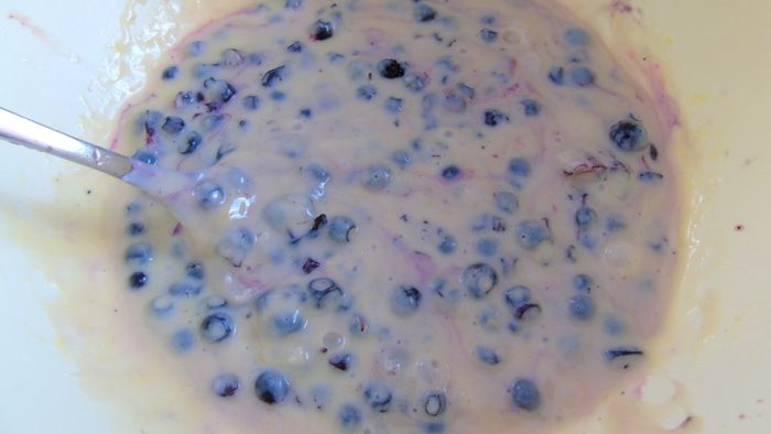 Высыпьте в крем чернику и аккуратно перемешайте.