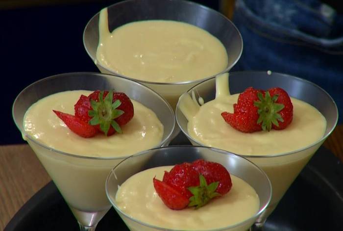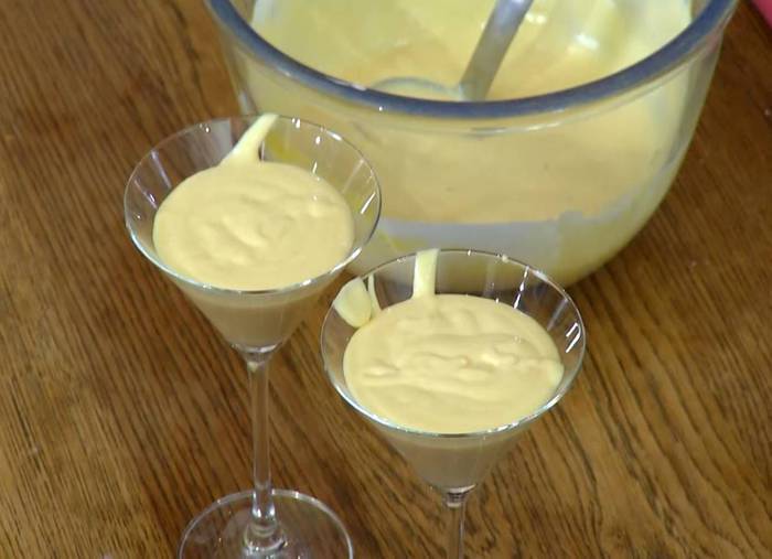 Разлить мусс в прозрачные бокалы и отправить в холодильник на час.