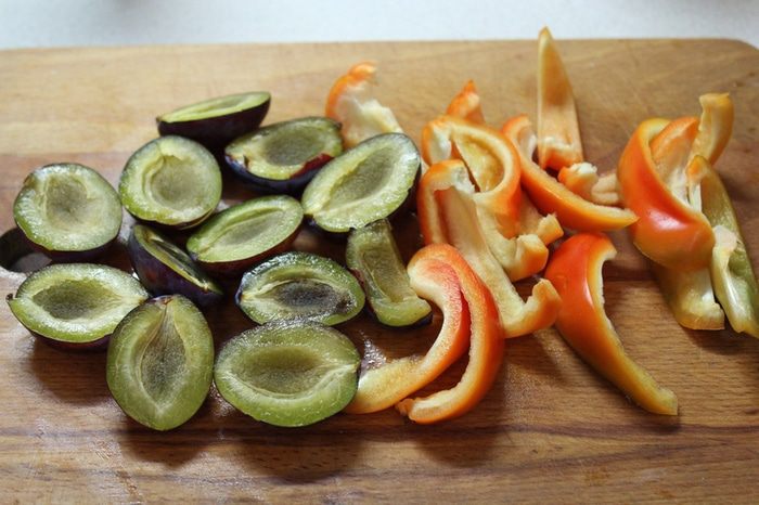 Очень простое и эффектное блюдо! Для приготовления нужно взять крепкие сливы, иначе они потеряют форму при тушении.