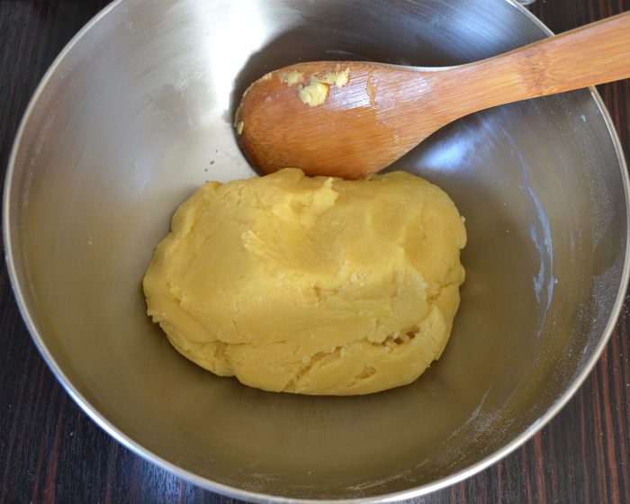 Замесить мягкое эластичное тесто. Сразу выложить в форму (диаметром 24 см) и руками разровнять по дну формы, сформировав бортики.