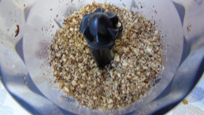 Орехи перебейте в блендере.