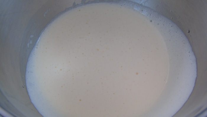 Яйца взбейте в пену постепенно добавляя сахар, затем продолжая взбивать влейте растительное масло и масло грецкого ореха Biolio.