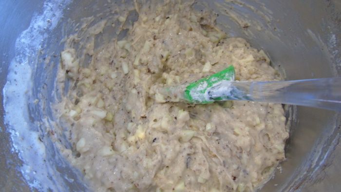В последнюю очередь введите в тесто орехи, хорошо перемешайте.