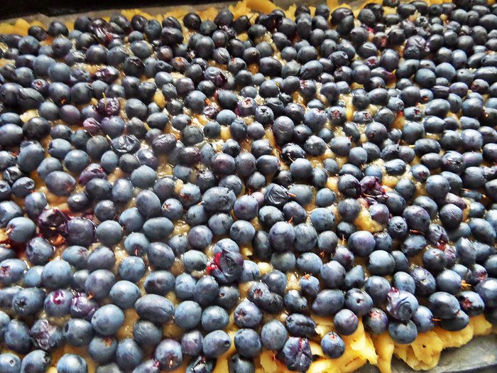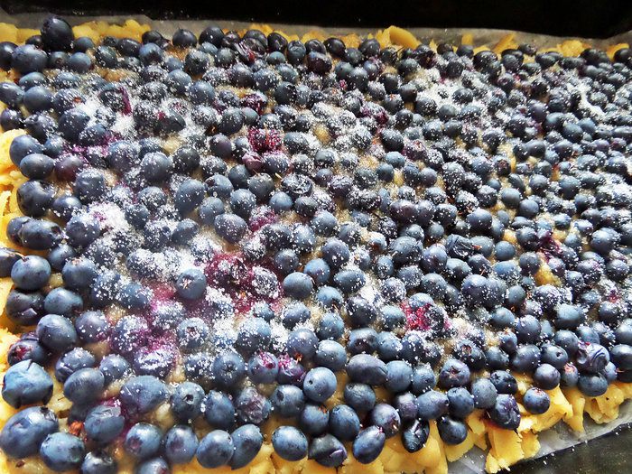 Рассыпаем ягоды по тесту.