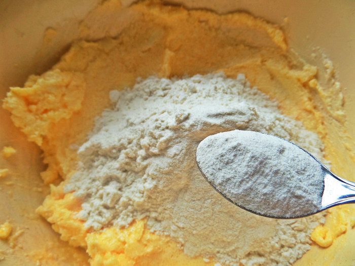 Всыпаем муку с разрыхлителем.