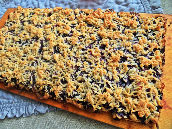 Песочное печенье-пирог из тертого теста знакомо многим. Рецетов много, я придумала свой вариант с ягодами (зимой готовим с замороженными) и бананом. Получилось сочно, рассыпчато, очень вкусно, почти пирожные!