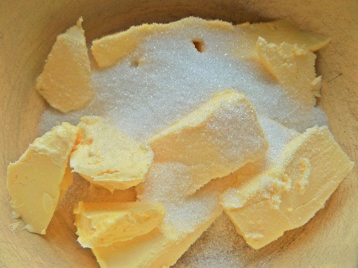 Масло достать заранее, чтобы было мягкое. Растереть масло с мелким сахаром.