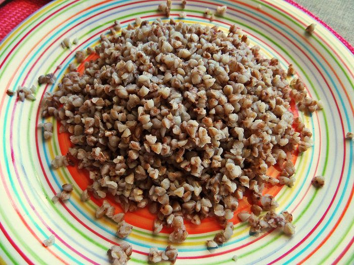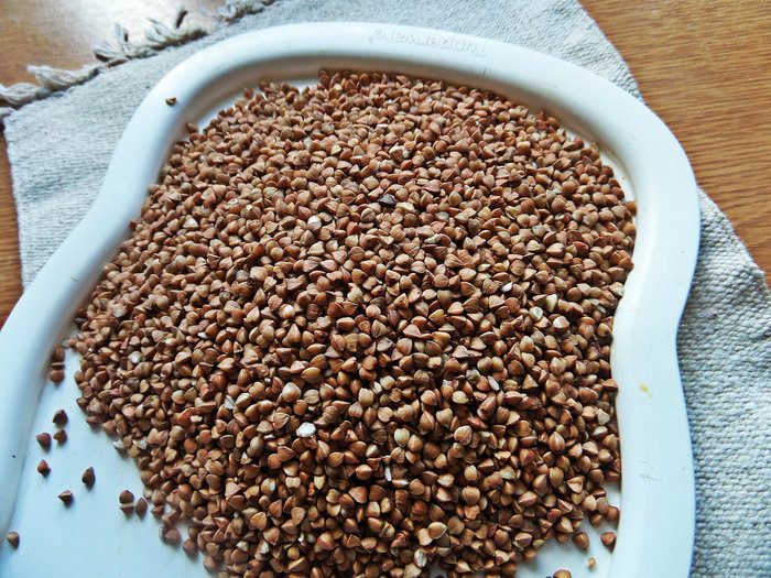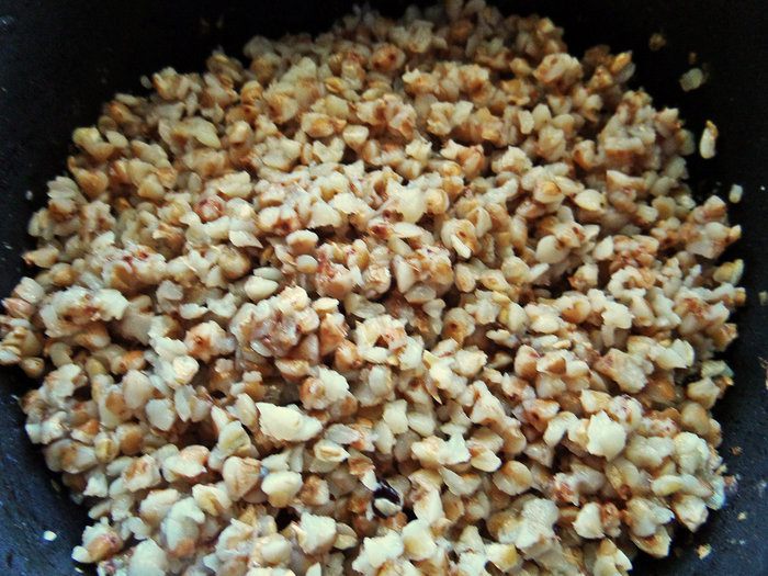 Итак, начинаем с гречки. Чистим, промываем через сито, заливаем водой и ставим вариться с солью.